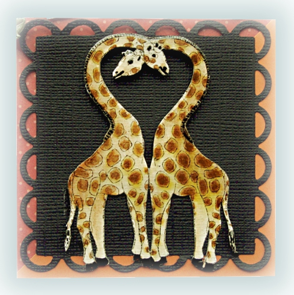 As soon as I saw Giraffe Love I knew this image was going to be used for my husband’s birthday card… so adorable… I just love the way the two heads entwine to form a heart. I water coloured and then added a layer of diamond glaze to really make it zing, did the same with the letters.