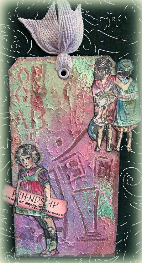 The stamped sentiments came from a Dyan Reaveley Quintessential Quotes set. Both ladies are from Flonzcrafts you can find one above and the other here . “Just A Note” is an Anita’s stamp from Docrafts, ladies face on the tag is a Creative Expressions stamp. The postcard with the flowers from Crafty Individuals was stamped onto a die cut envelope, added a tag inside and also one on the outside. In the right hand corner a PaperArtsy mini stamp was used called French Script.