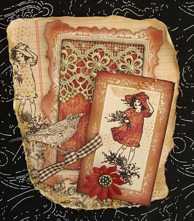 Wow she seriously looks hung over or all the worlds troubles are on her shoulders. How many of us have looked like that at some time or another?? Her mum looks as if she is writing a little note to cheer her up!! My mind certainly gets imaginative when I make something but I adore the image which you can find here that I just had to use it.